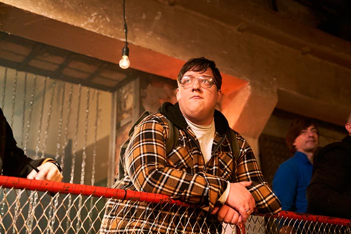 Санкт - Петербург. Сумерки. Зима. Метель. Воет ветер. Лают собаки. В левой части сцены – дверь квартиры на одной из центральных улиц. Над ней горит фонарь. В стороне светится витрина "Булочной - Кондитерской". В направлении двери движется субтильный востроносый юноша, с несколько женственными повадками. На вид – никак не более двадцати лет. Воротник приталенного пальто поднят. На голове каракулевая шапка с козырьком и опущенными ушами. Под мышкой портфель. Это юный Гоголь.